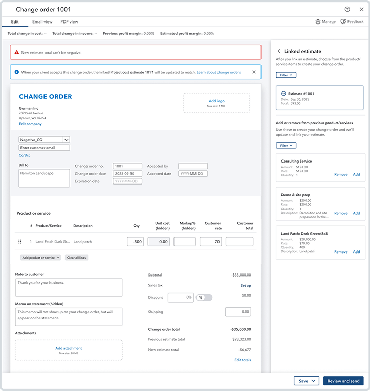 This is a good start, but the proposal builder needs quite a bit of work before most construction companies will adopt it as their primary tool. The formatting options, template flexibility, and level of customization are not yet where they need to be for contractors who are sending proposals that compete for six- and seven-figure jobs. We expect Intuit to iterate on this quickly.